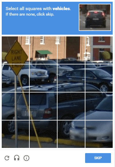 Google’s ReCaptcha v2 is the one that asks users to click on items in a photograph: