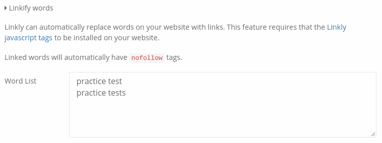 In the Word list field, enter words or phrases you would like to add this link to, one per line.